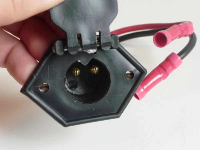 The plug is pre-wired to (2) 8 gauge wires and has pre-installed crimping wire connectors. To attach the receptacle to your battery wires, you will need to strip 1/2" of wire coating off each of the battery wires and insert and crimp the wires into the wire connections. You will also need the MotorGuide Power Plug which is compatible with the MotorGuide power receptacle.